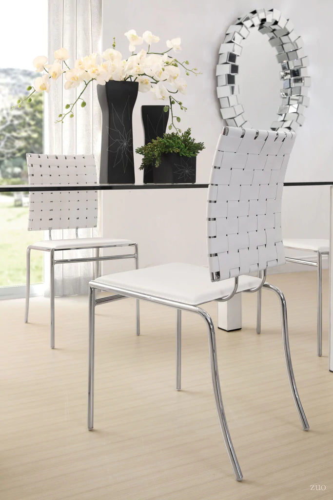 With three height choices, the Criss Cross works in any d??cor setting, modern or transitional. It has leatherette back straps and a flat seat with a chrome steel tube frame.