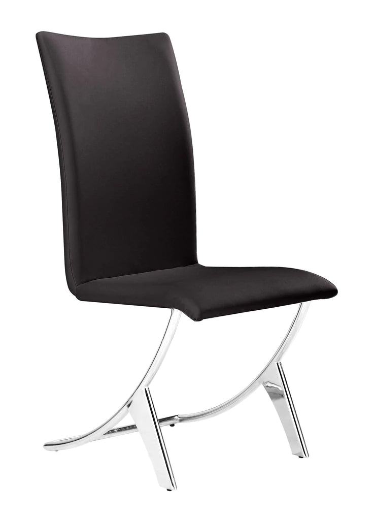 Probably the most comfortable and well-thought out dining chair of our collection, the Delfin chair has a slim silhouette that belies its comfort. It sits on chromed steel tube frame that has a slight reclining motion. A great chair for a great meal and after dinner conversation.
