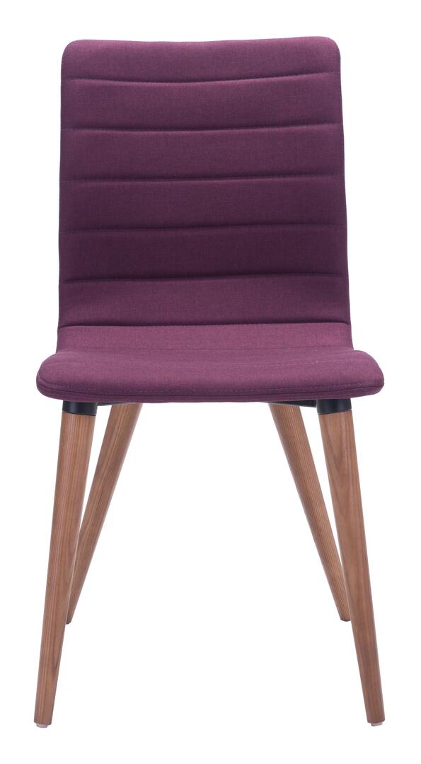 Mid-Century Modern perfection as the Jericho dining chair features poly-linen upholstered seam detail to slim seat/back design and is finished with sturdy all wood legs in warm walnut finish. Color options are grey or purple poly-linen fabric.