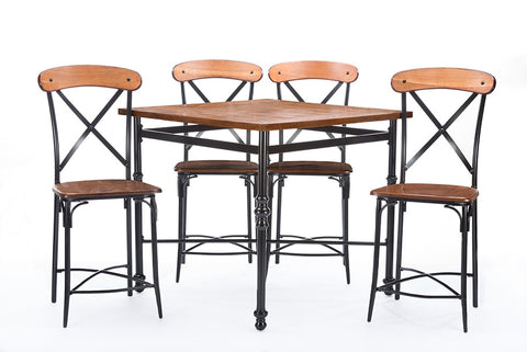 Baxton Studio Broxburn Light Brown Wood & Metal 5-Piece Dining Set