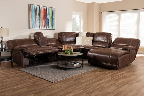 Baxton Studio Salomo Modern and Contemporary Brown Faux Leather Upholstered 6-Piece Sectional Recliner Sofa with 3 Reclining Seats