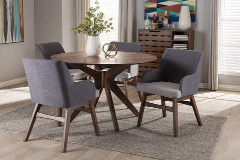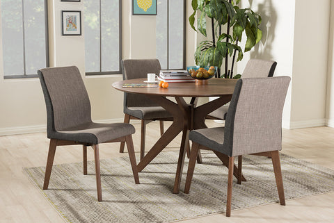 Baxton Studio Kimberly Mid-Century Modern Walnut Wood Round 5-Piece Dining Set