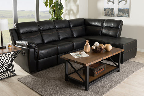 Baxton Studio Roland Modern and Contemporary Black Faux Leather 2-Piece Sectional with Recliner and Storage Chaise