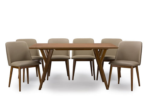 Baxton Studio Lavin Mid-Century "Walnut" Light Brown Wood 7PC Dining Set