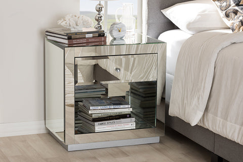 Baxton Studio Melanie Hollywood Regency Glamour Style Mirrored 1-Drawer 1-Shelf Nightstand (Set of 2)
