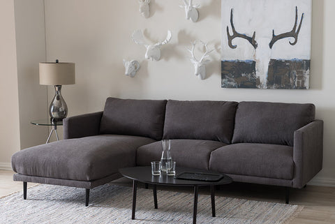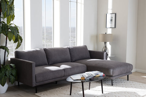 Baxton Studio Riley Retro Mid-Century Modern Grey Fabric Upholstered Left Facing Chaise Sectional Sofa