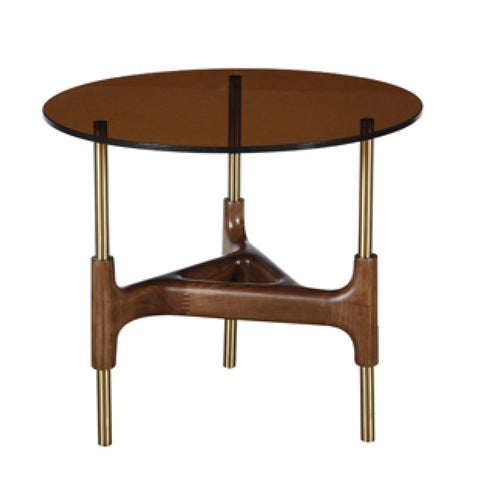 Vig Furniture Modrest Lawson Modern Round Walnut & Glass End Table