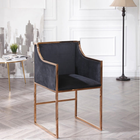 Vig Furniture Modrest Natasha Modern Black Velvet & Rosegold Dining Chair