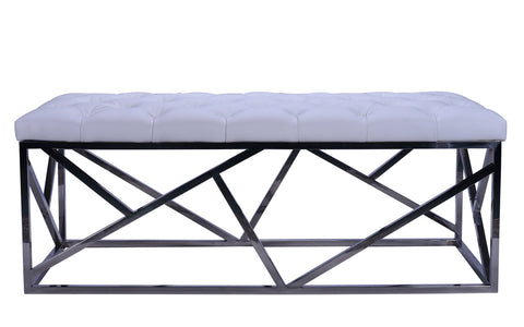 Vig Furniture Modrest Lindsey Modern White Leatherette & Stainless Steel Bench