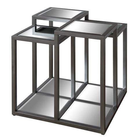 Crestview Collection Park Avenue Multi-Level Metal and Mirror End Table 24x24x25"