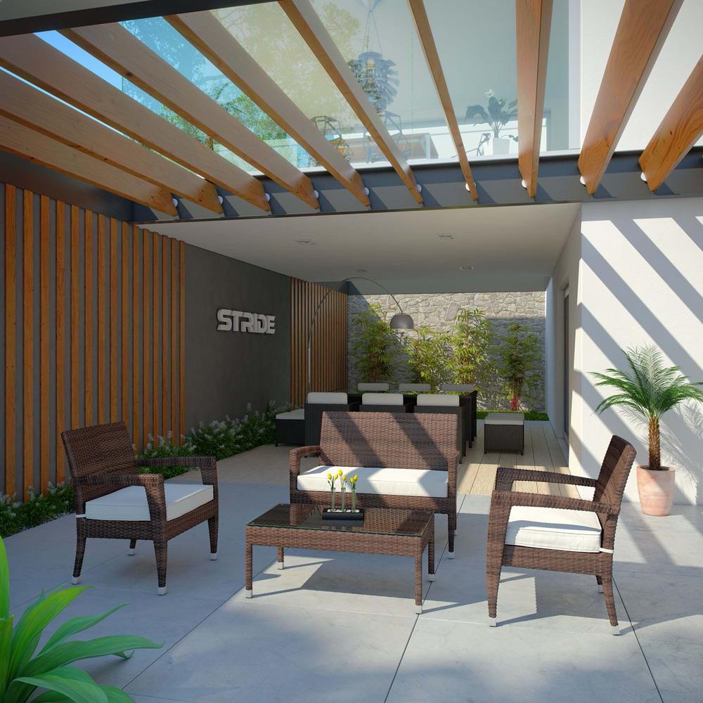 Stride will keep your step every bit of the way, while granting a welcome reprieve from a calendar full of appointments, meetings, dates and get-togethers. The compact design and sleek lines coalesce into set brimming with dilatant flair. The comfy all-weather cushions, and mixed-color rattan weaving, are ready for you to breeze right in, and drink your beverage of choice among scenic heights and good friends. Set Includes: One - Coffe Table One - Loveseat Two - Armchairs