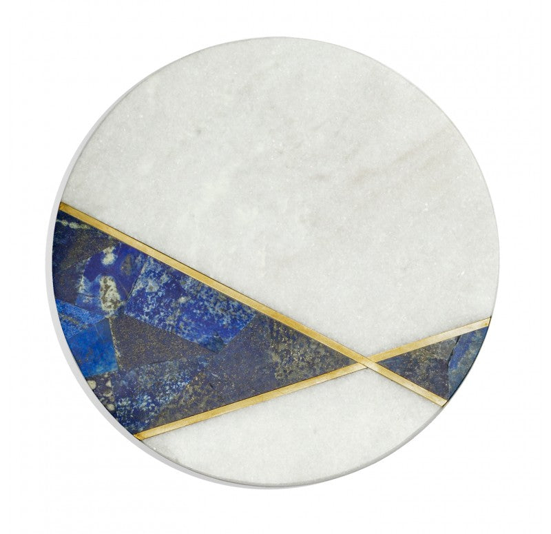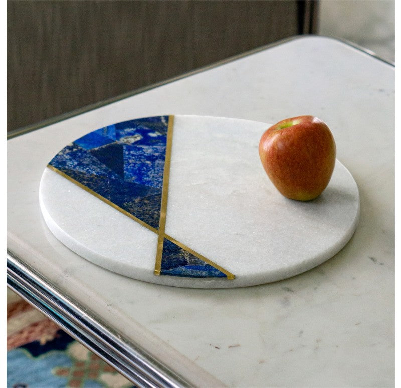 Marble Platter w/ Lapis & Brass by Gold Leaf Design Group