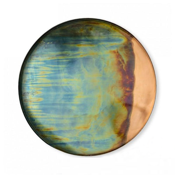 Handmade. Colors and intensity, lines and textures are uncontrollable and will vary from piece to piece. Minimal warping due to heat treatment. Indoor only. Weight: 5.5 lbs/ 2.8 lbs.