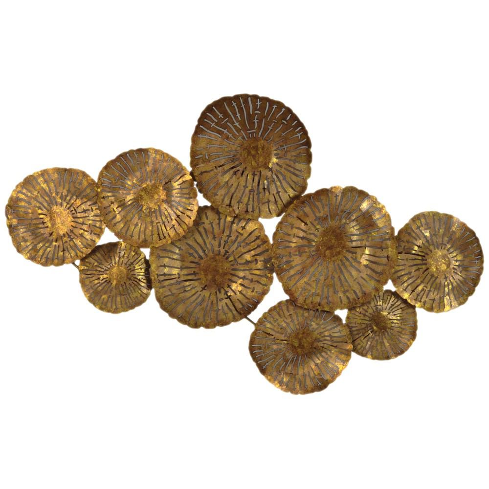 Add a high-end, designer look to your home with this large metal wall sculpture. Crafted out of 100% iron and given a rich, gold finish. Easy to hang, either vertically or horizontally. Hand-finsihed for an artisan aesthetic. Made of metal for a quality and longlasting wall d©cor piece. The large 43 in. wide size covers a large area with interesting wall decor. Can be hung horizontally or vertically, for multiple display options. Contemporary Modern Style. Made in China. We are offering 1 year limited warranty (covered for any manufacturer's defect). Construction: Iron. We understand how important your home is and how decorating your kitchen, dining room or bedrooms with classy, contemporary furnishings can help make it a place that reflects who you are. We believe in the power modern furniture has in creating not just a home but YOUR home. We believe in feeling good about our home's environment, and we think you do too.