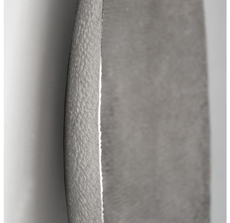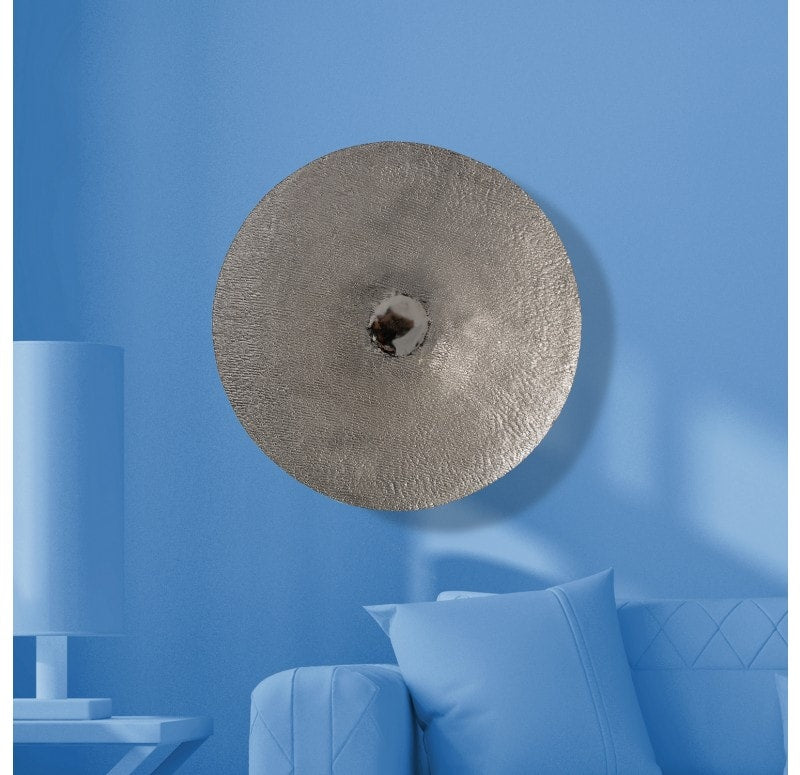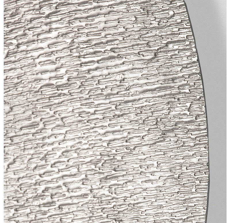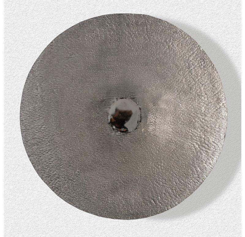 Hand textured, bowl shape. Each piece is different. Loop hanger. Indoor only. Truck shipping. Weight: 8.8 lbs.