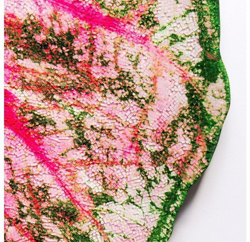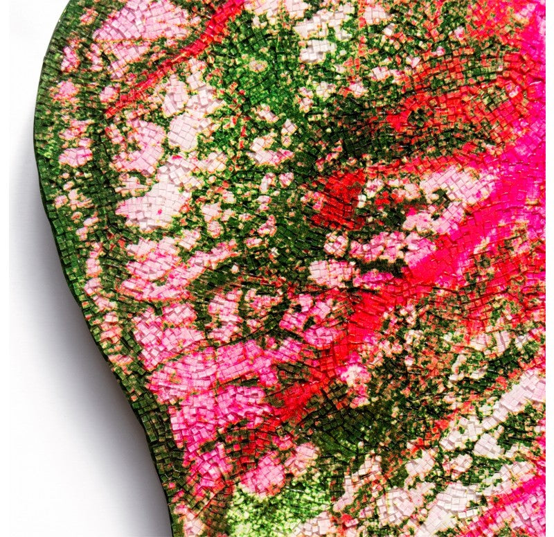 Tiny clear glass mosaic tiles are hand applied over our photography with a thick clear lacquer coating. Hanging hardware included for you to attach and position the artwork as you wish. Indoor only. Weight: 10 lbs.