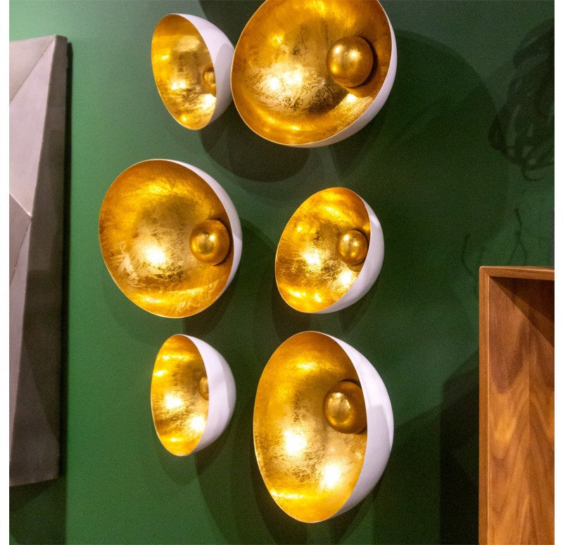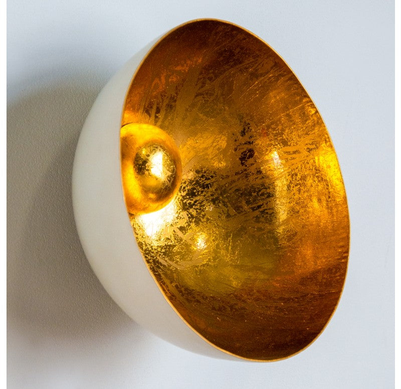 Designed so that each piece can angle differently. Wall mount bracket screws securely into wall. Satin white exterior and gold foiled interior. Interior only. Weight: 3 lbs.