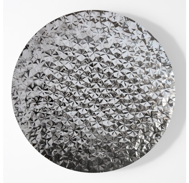 Concave shape. Outdoor friendly. Hand hammered texture. Weight: 4.7 lbs.