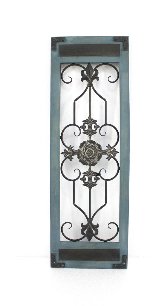 This piece with wood frame and stylish metal scroll works will give style to any settings