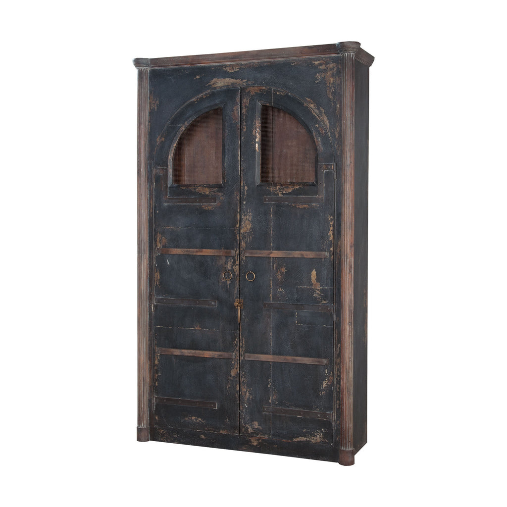 Vintage Noir on tin and wood armoire with Natural Aged Stain finish on interior and accent trim.