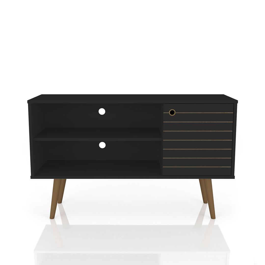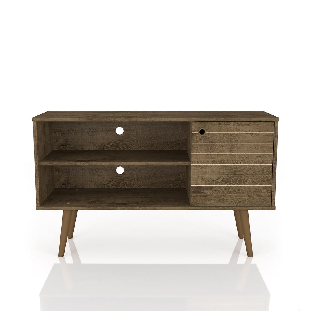 The Liberty 42.52 Mid-Century Modern TV Stand is the perfect blend of quality craftsmanship, brilliant design, and purposeful functionality. Featuring 2 open shelves, and one hidden cubby to create the ultimate entertainment center perfect for stashing DVDs, board games, electronics, and media accessories. Free standing and easy to maneuver, this piece will mix well with any decor and its artful grooves will create a statement in any space.