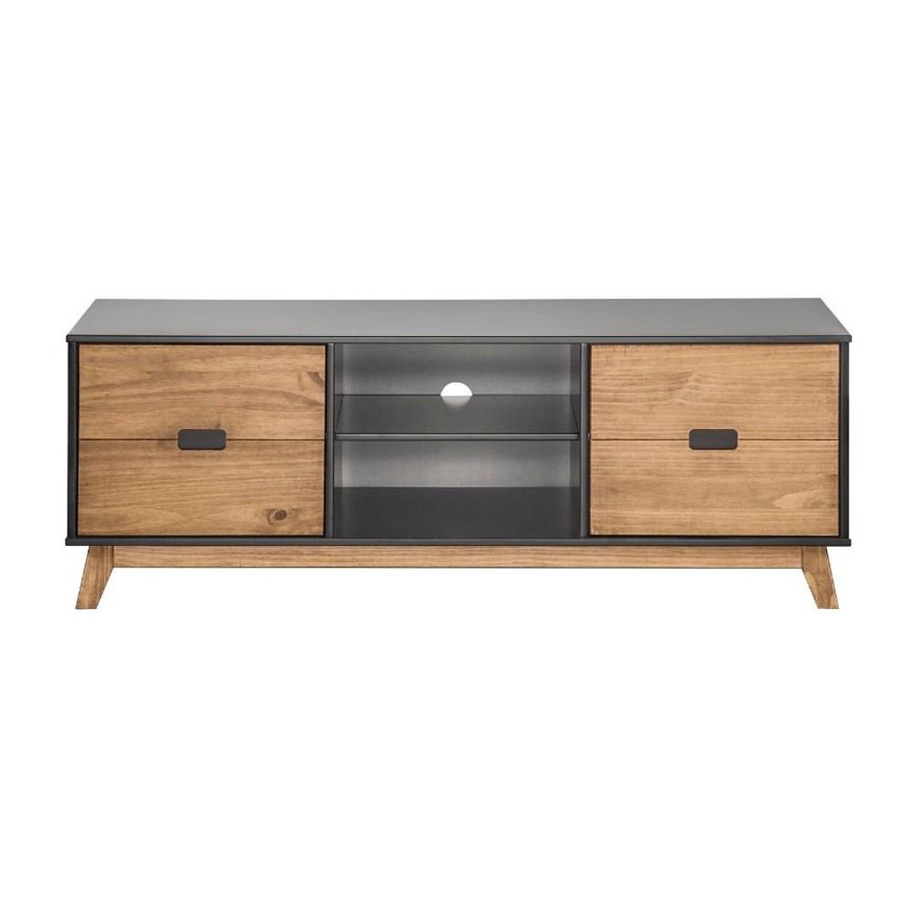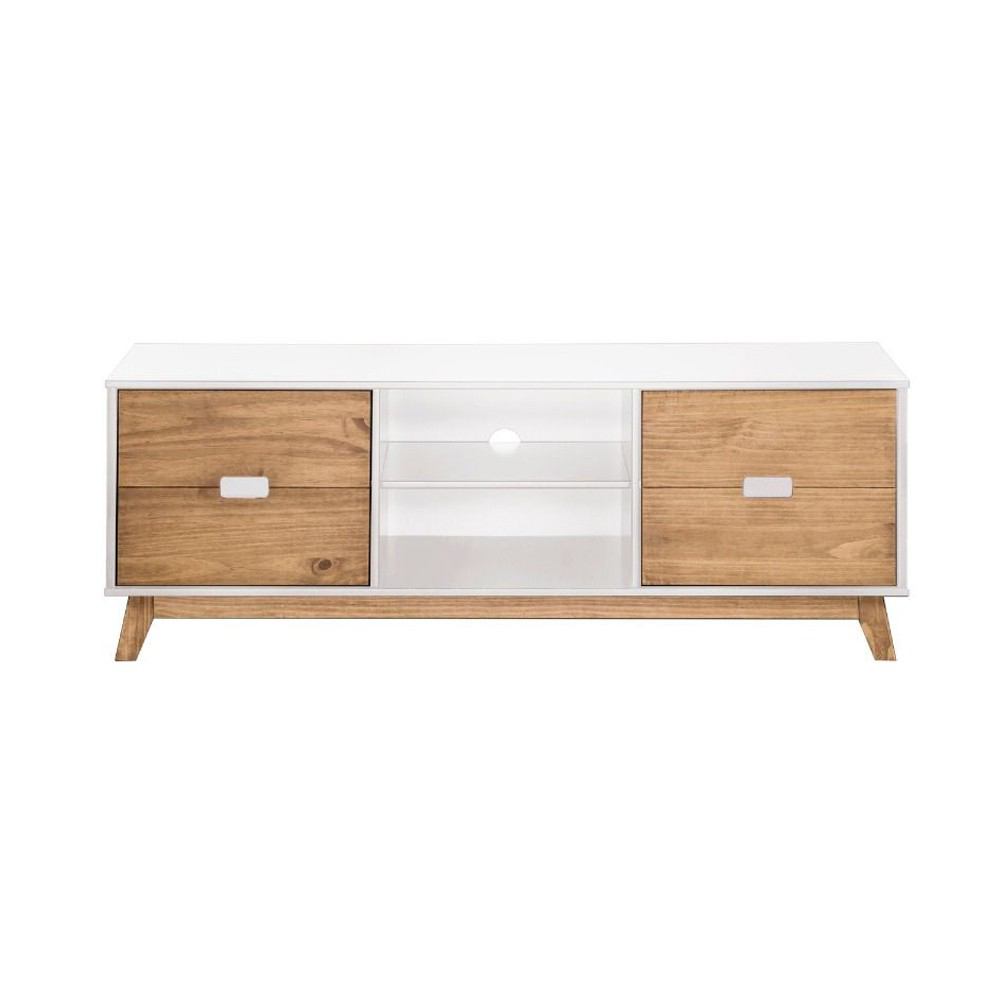 Functional entertaining at its best without compromising on style or design, the Vandalia TV stand 2.0, features two concealed cubby spaces and two open shelves perfect for showcasing your DVD and Blu-ray players, while ensuring your remotes and magazines stay safely tucked away. A smooth and spacious table top allows for showcasing framed photos and other decorative accents.