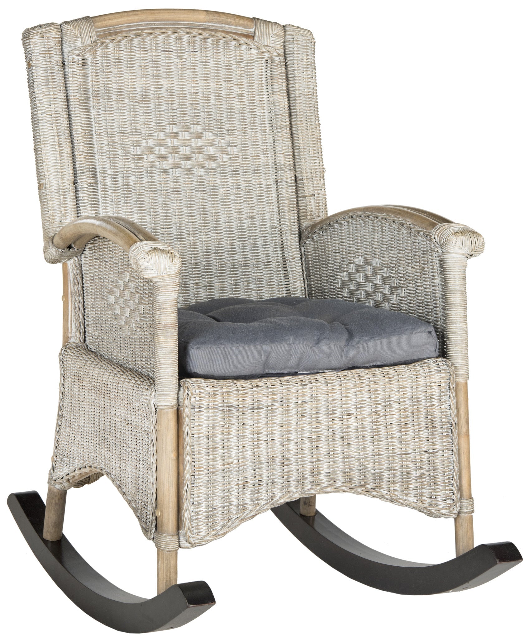 Perched on the porch of Cape Cod™s most charming home is the antique that inspired this classic wicker rocking chair. Its welcoming, ample seat and gentle curves sooth the modern soul, while its neutral grey color is ideal for any decor.