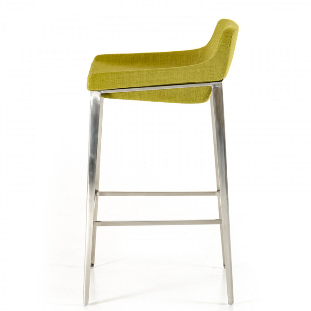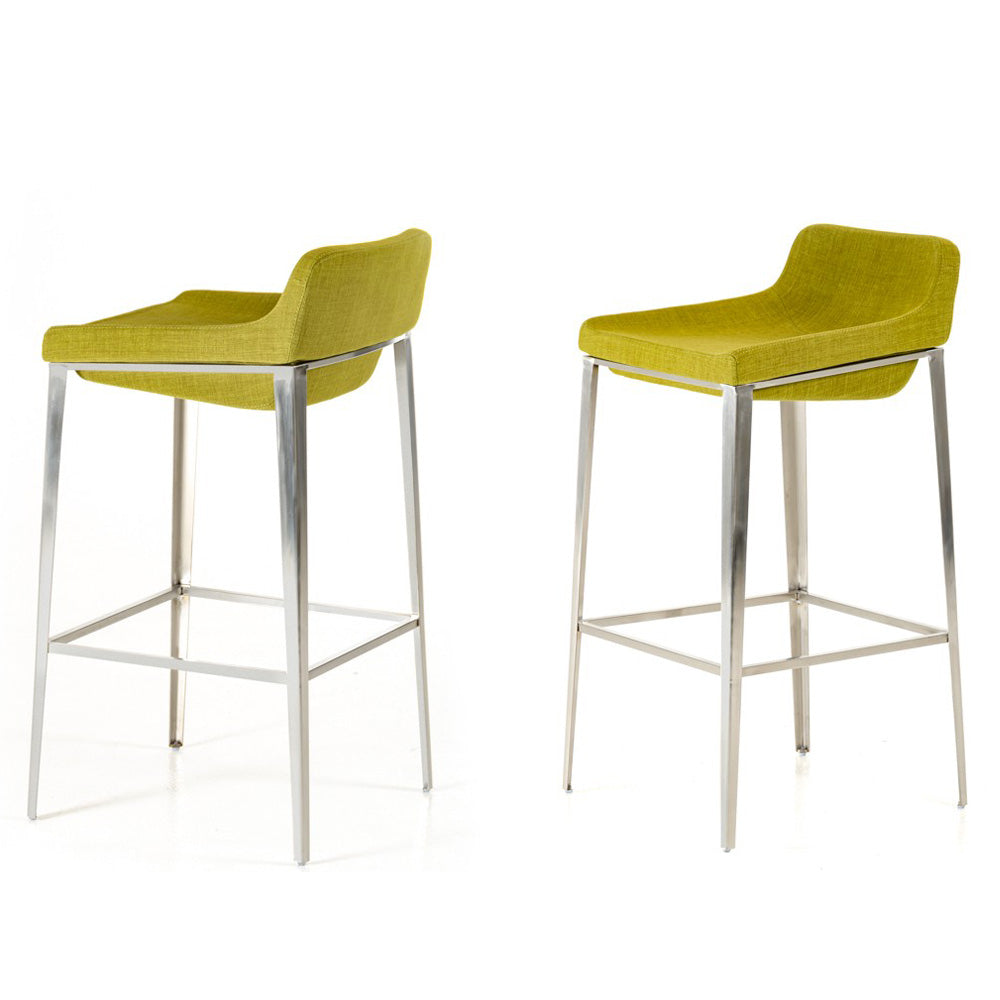 The Adhil Bar Stool would make a functional splash of color in any kitchen setting. Long and slightly tapered stainless steel legs stretch up towards the bright green fabric seat which is made with 100% polyester.